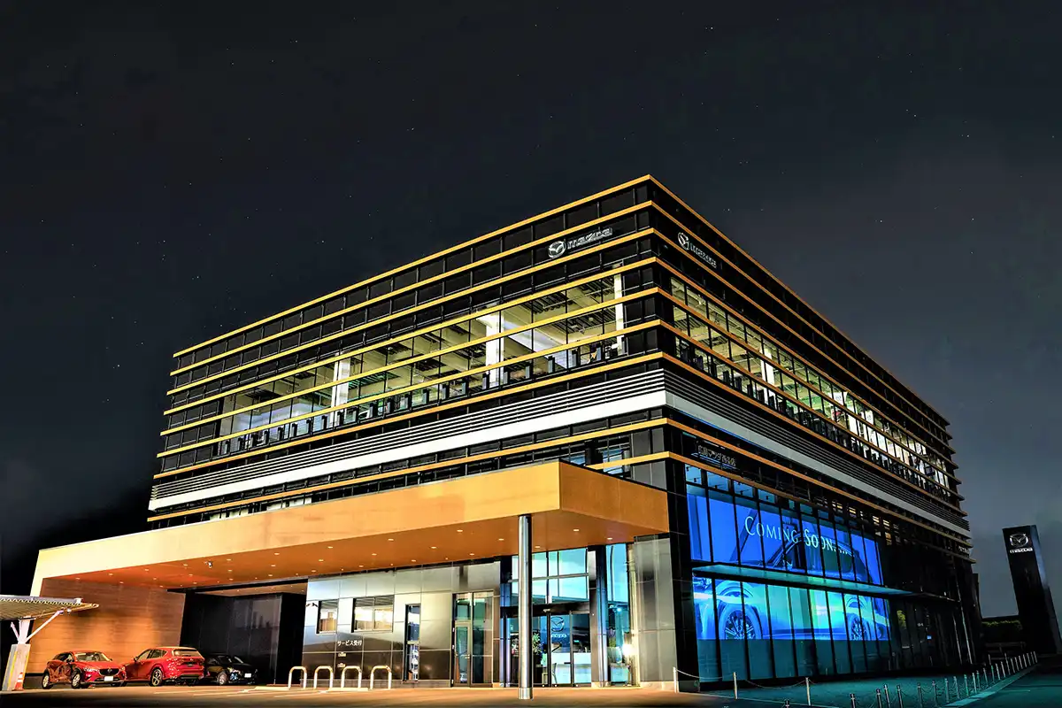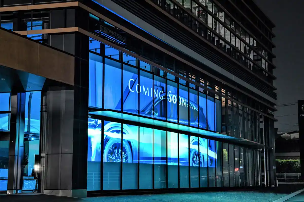 ㈱広島マツダ西条店様の大型プロジェクションフィルム施工の様子をアップいたしました。