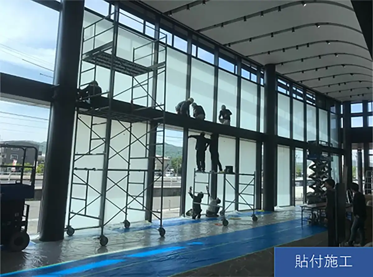 大型プロジェクションフィルム施工の様子