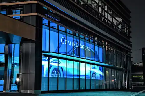 映像を投影することで、ウインドウガラスからの情報発信を可能にします。
